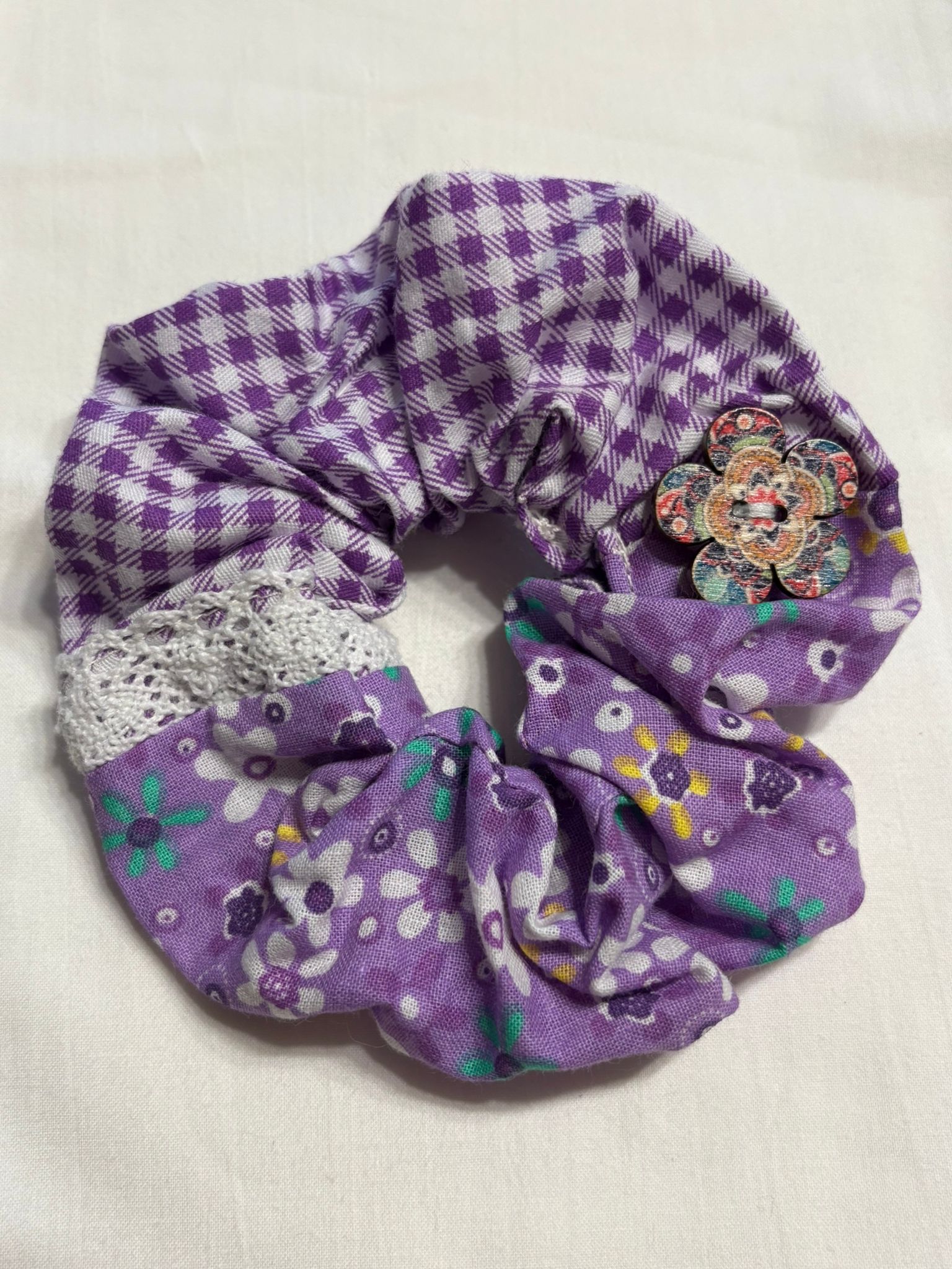 Scrunchie Handgefertigt aus 100 % Baumwolle Lila Kariert